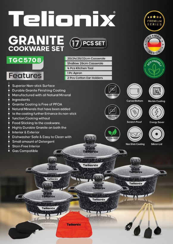 سطح نچسب عالی _ پوشش گرانیتی بادوام _ ساخته شده با مواد معدنی کاملاً طبیعی _ بدون سرب _ پوشش گرانیتی فاقد PFOA است _ مواد معدنی طبیعی که به پوشش اضافه شدهاند نچسبی آن را بیشتر میکنند _ عملکرد پختوپز بدون چسبیدن غذا به ظروف