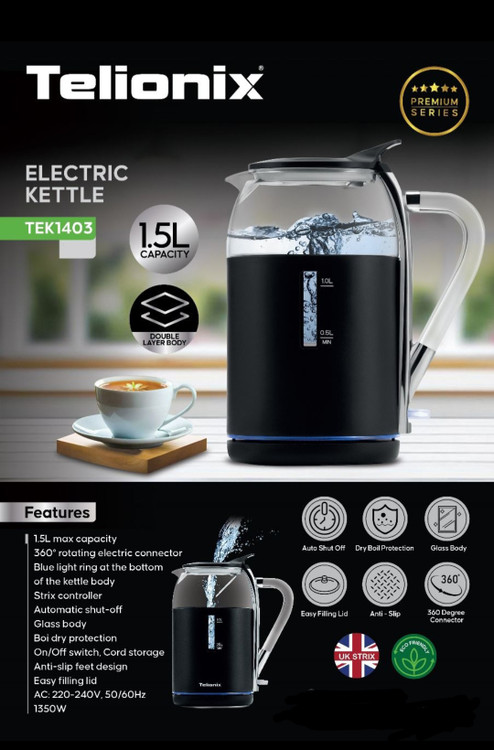 سایرمشخصات: پایه چرخشی 360 درجه _ حلقه نور آبی در پایین از بدنه کتری _ خاموش شدن خودکار _ درب جداشونده _ صافی دهانه کتری